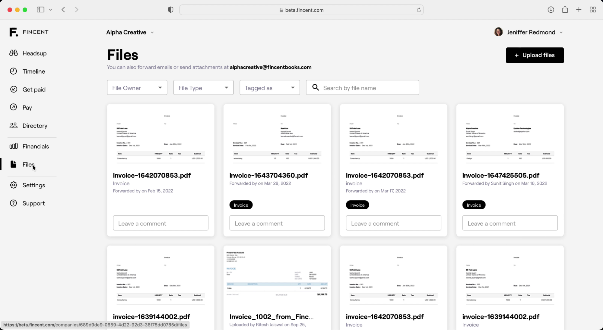 Just go to the “File” tab to find your receipts. You can look up the right one using tags, file type or even direct search.