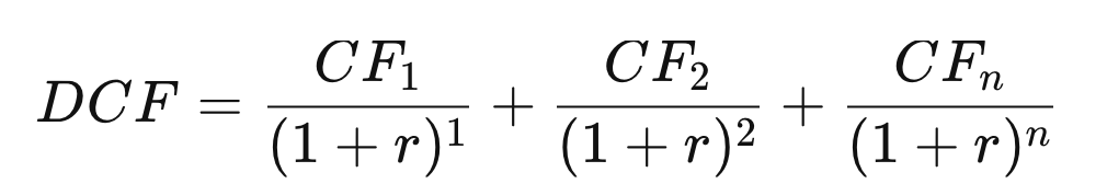 The value of a company or investment is calculated using the DCF formula. It displays the price an investor would be prepared to pay for an investment given a required rate of return on investment (the discount rate).