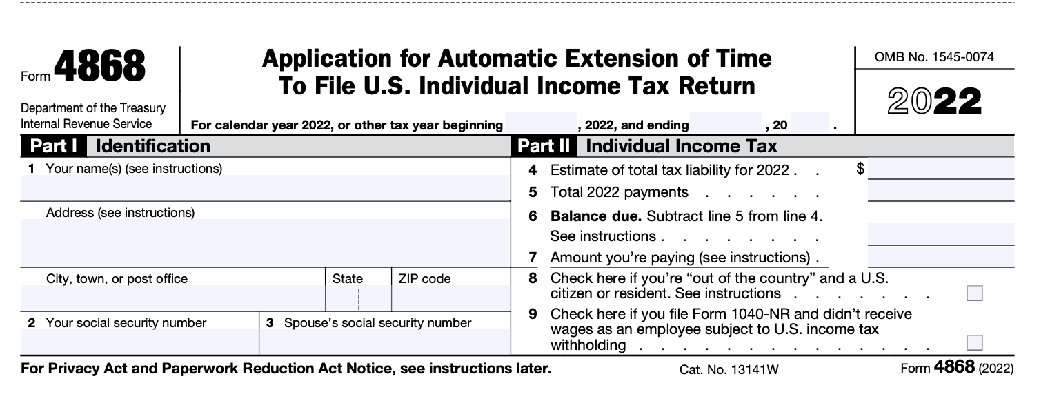 The form you use for a tax extension is 4868. Here is how filling a Form 4868 affects your tax situation: