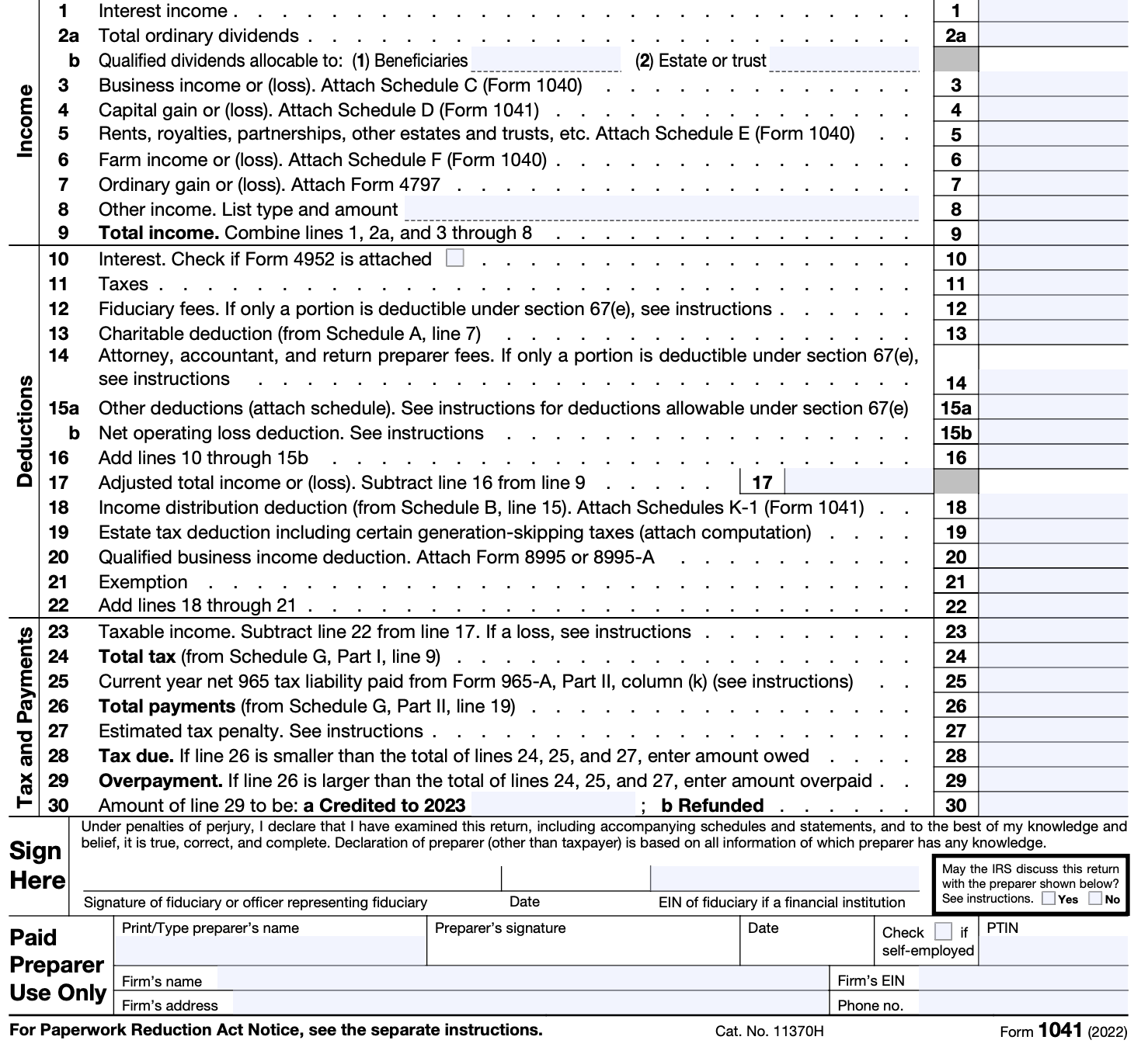 IRS Tax Form 1041 Filing Guide: Trusts and Estate Income Tax Returns