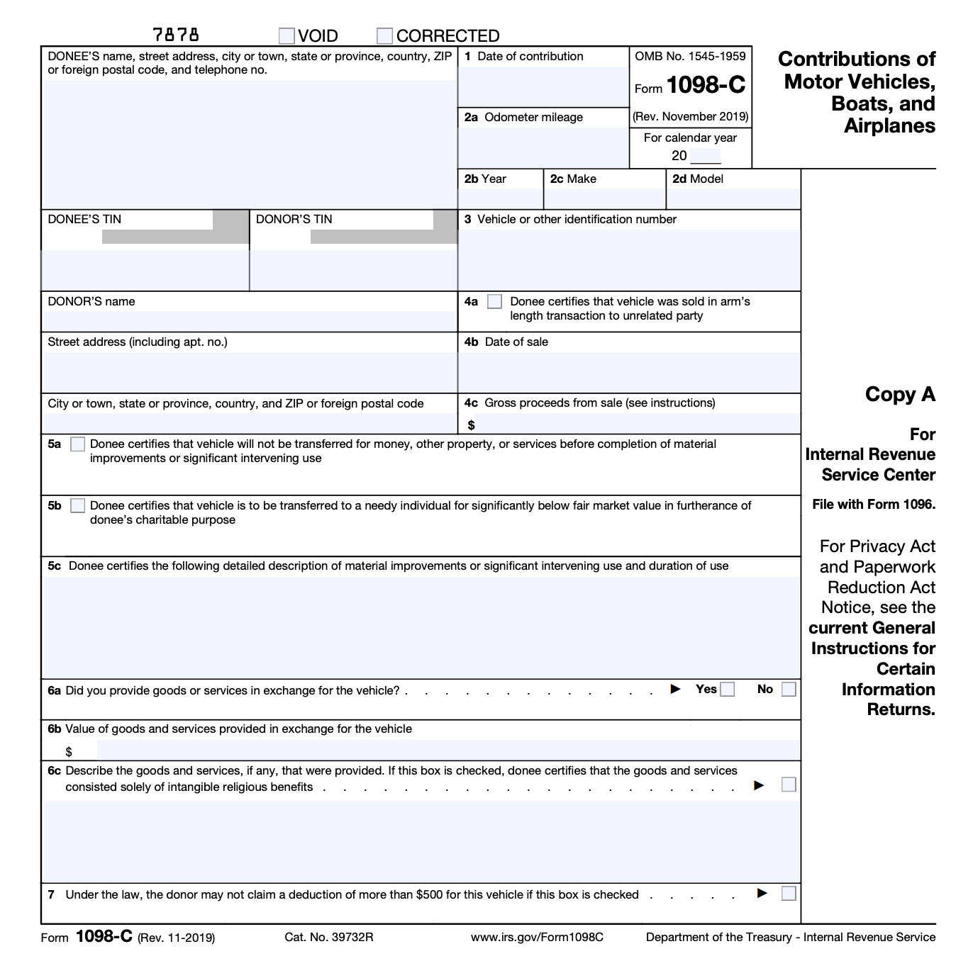 Donating a motor vehicle, boat, or airplane to a charitable organization is an act of generosity that benefits both the donor and the charity. In addition to the positive impact of your donation, there are tax benefits that come with making charitable contributions. To claim these benefits, you need to file Form 1098-C: Contributions of Motor Vehicles, Boats, and Airplanes. In this blog, we'll explore what this form is, who needs to file it, how to file it, and common mistakes to avoid.
