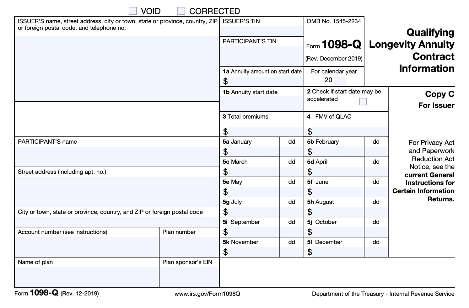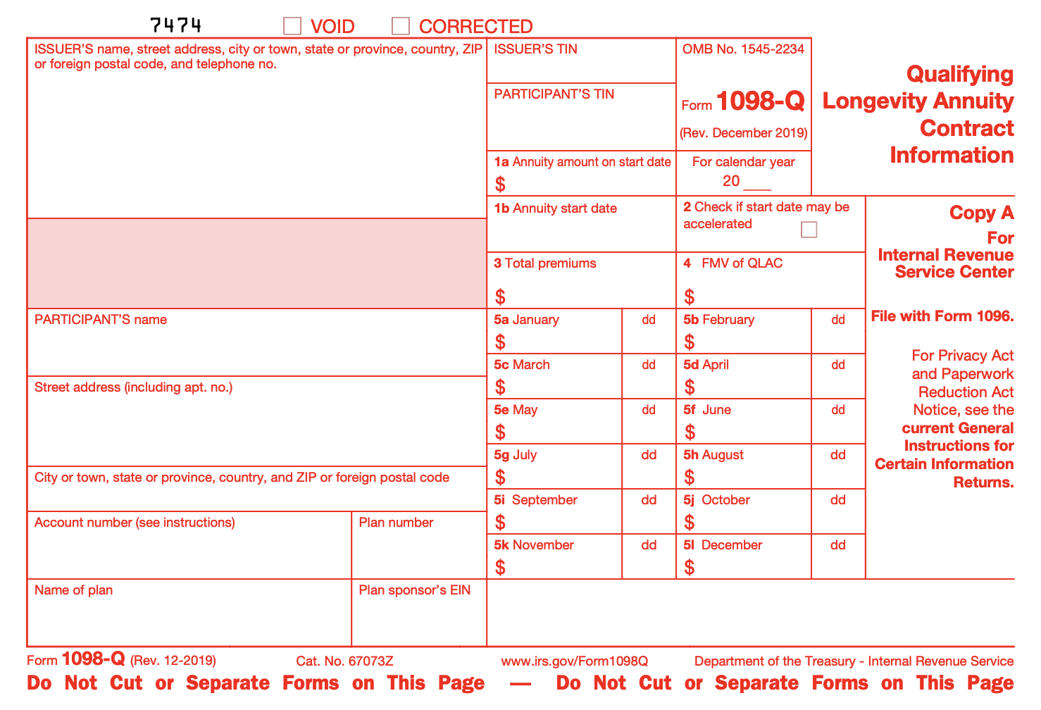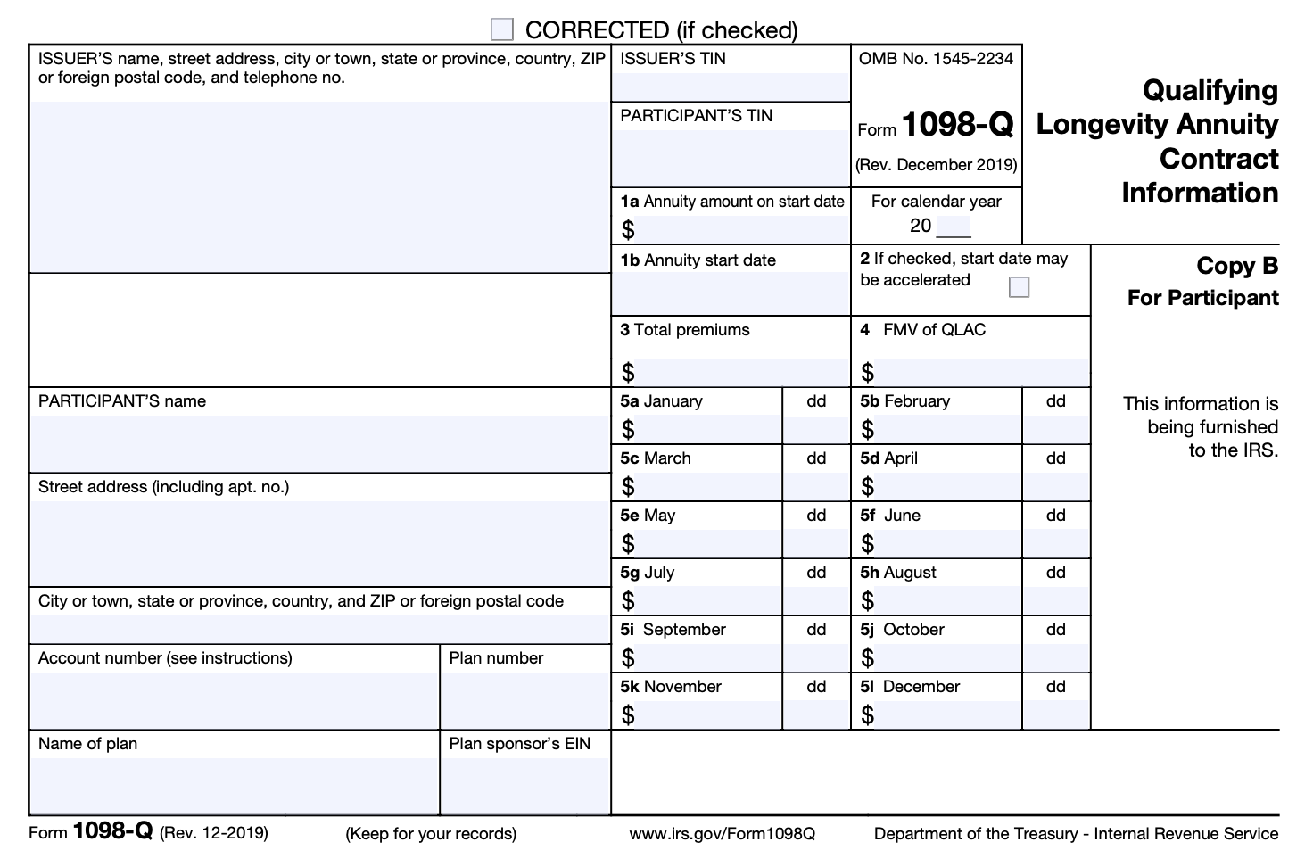 Form 1098-Q is an important document for owners of QLACs and issuers of these annuity contracts. It provides information about the premiums paid into the QLAC and any distributions made from the contract. By understanding the requirements for filing Form 1098-Q and the tax implications of owning a QLAC, individuals can make informed decisions about their retirement planning.