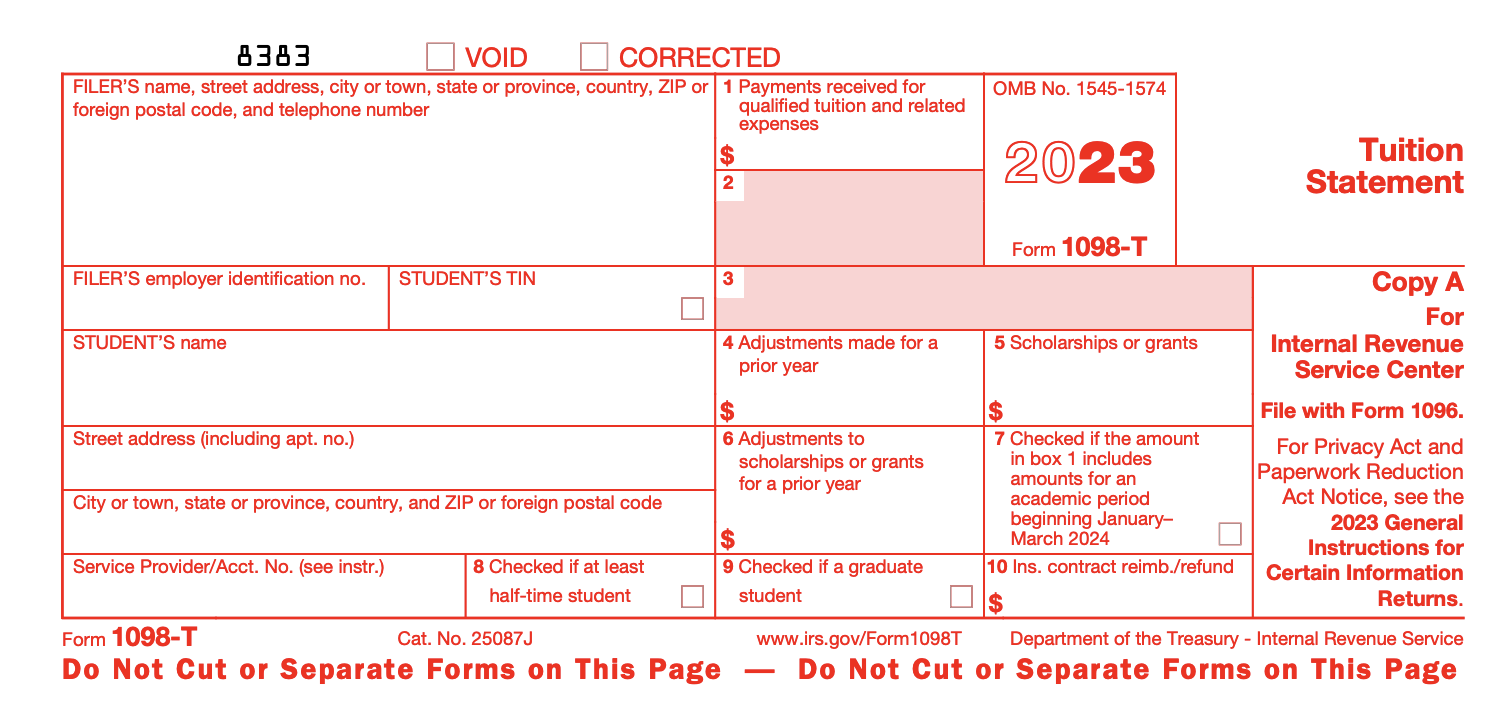 - For the latest updates on Form 1098-T, visit www.irs.gov/Form1098T.