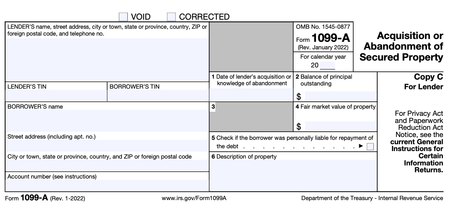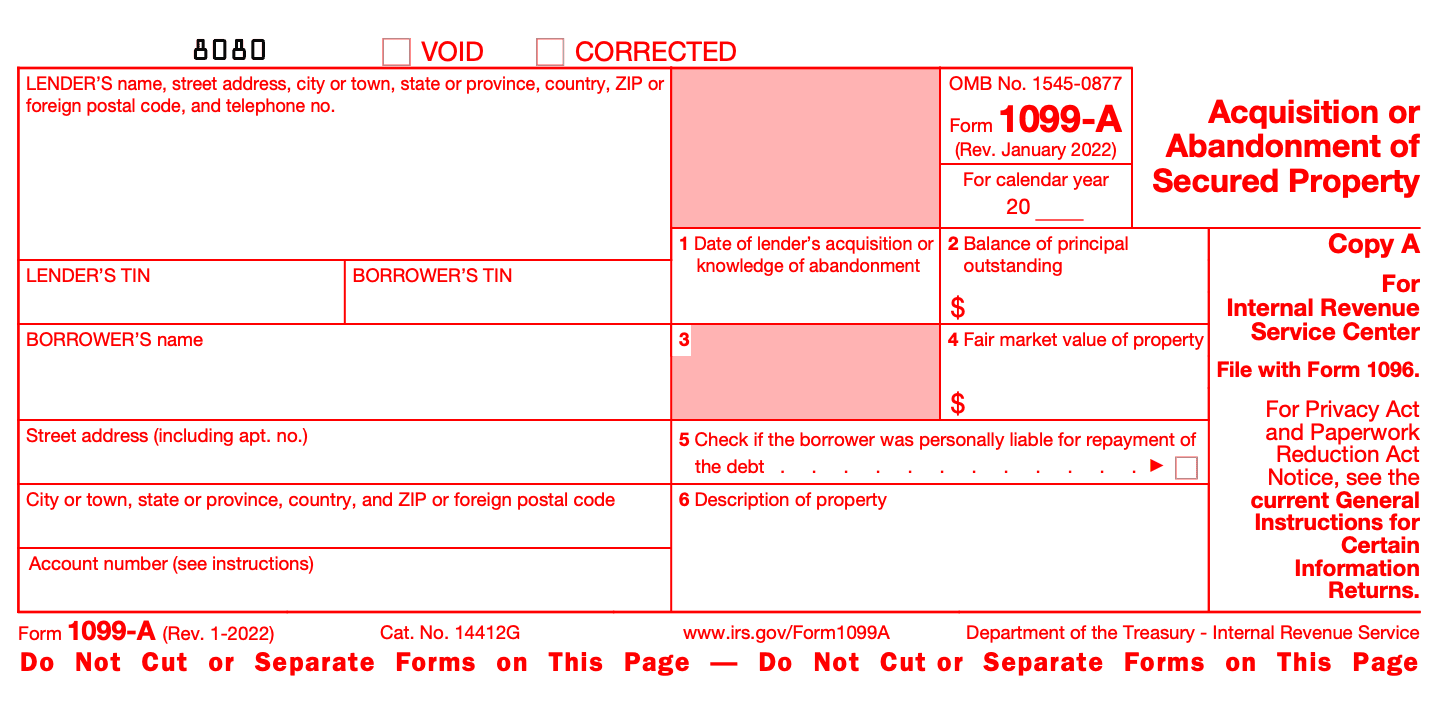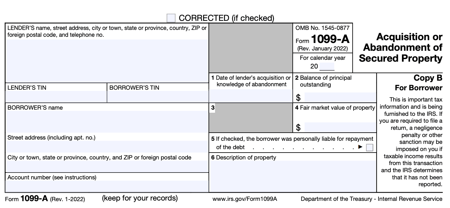 Form 1099-A: Acquisition or Abandonment of Secured Property