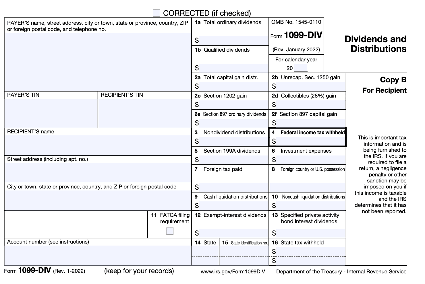When you receive dividends or distributions, the payer or financial institution that made the payment is generally required to provide you with a Form 1099-DIV. This form includes details about the income you received, such as the total amount, the type of income (qualified dividends, ordinary dividends, etc.), and any taxes withheld.