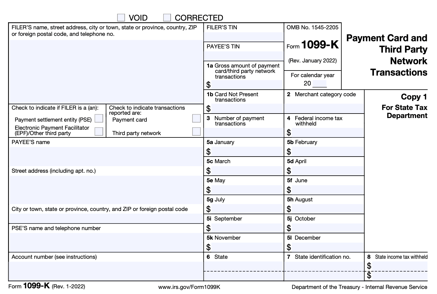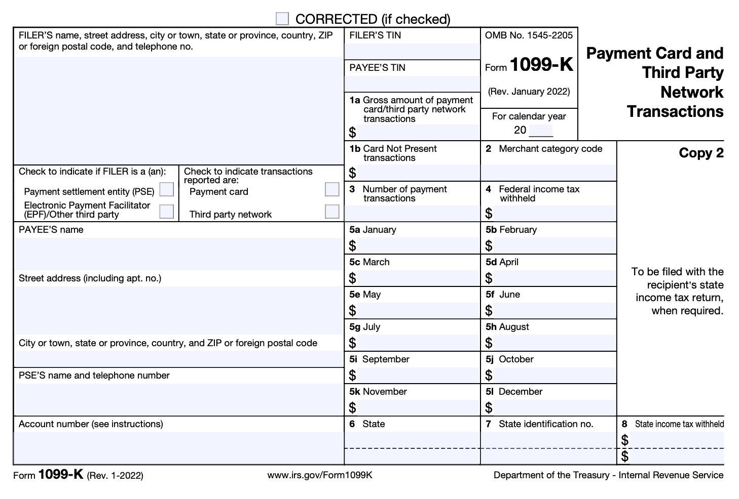 Filing deadline: The deadline to file Form 1099-K with the IRS is usually January 31st of the year following the calendar year in which the transactions occurred. For example, if you are reporting transactions for the year 2022, the deadline to file would be January 31, 2023. This deadline applies to both paper and electronic filings.