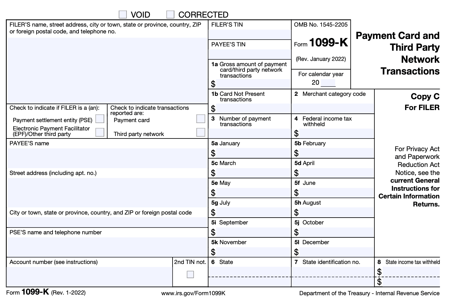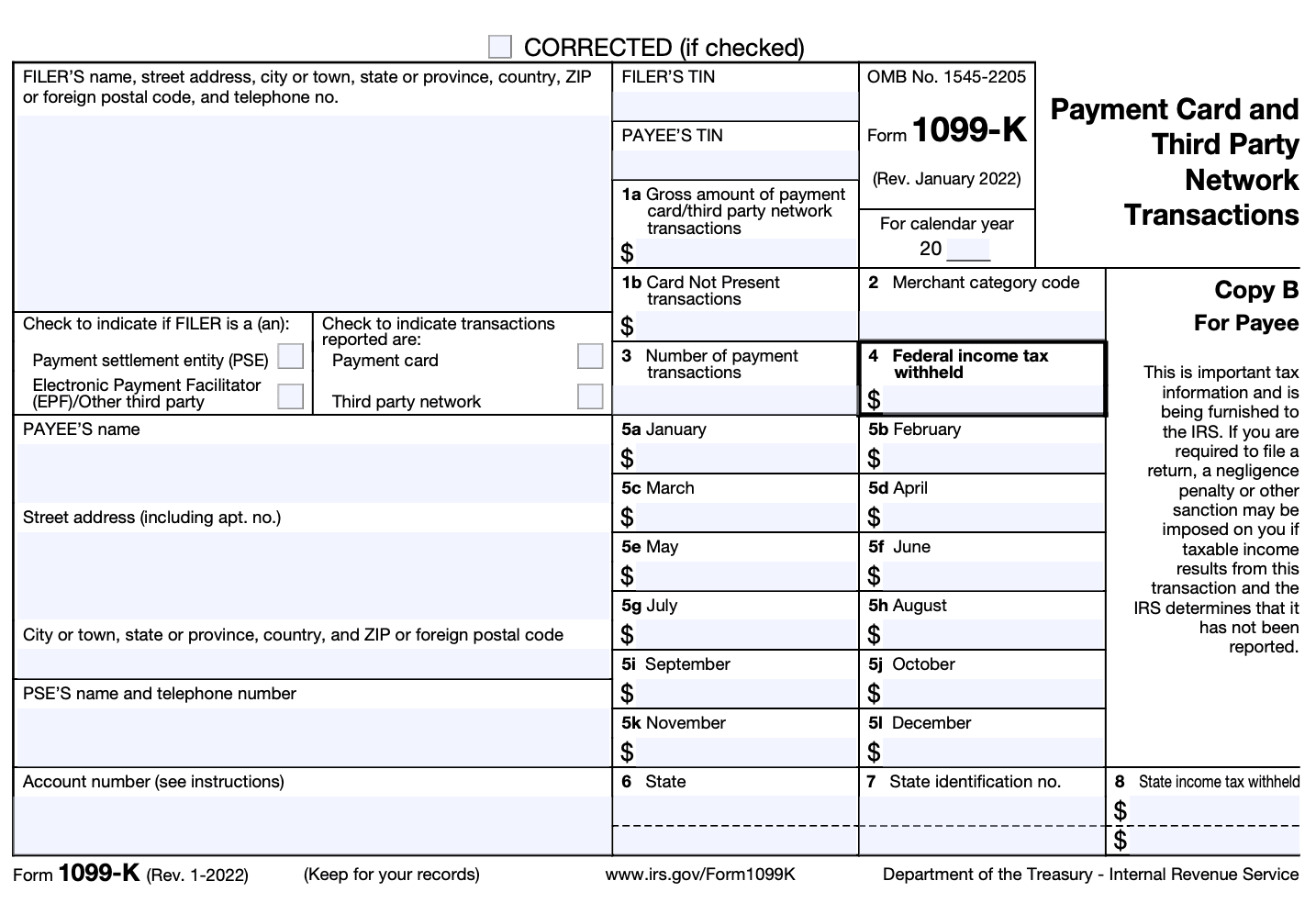 Form 1099-K: Payment Card and Third Party Network Transactions