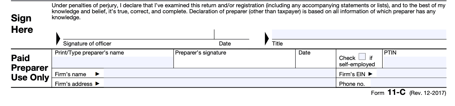 It is essential to consult the instructions provided with Form 11-C and seek guidance from a tax professional or the IRS directly to ensure compliance with all applicable requirements.