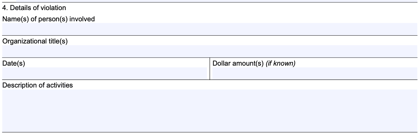 Vague or unclear allegations: Be specific and clear in your description of the alleged violation. Avoid using general or ambiguous language that could make it challenging for the IRS to understand the issue.