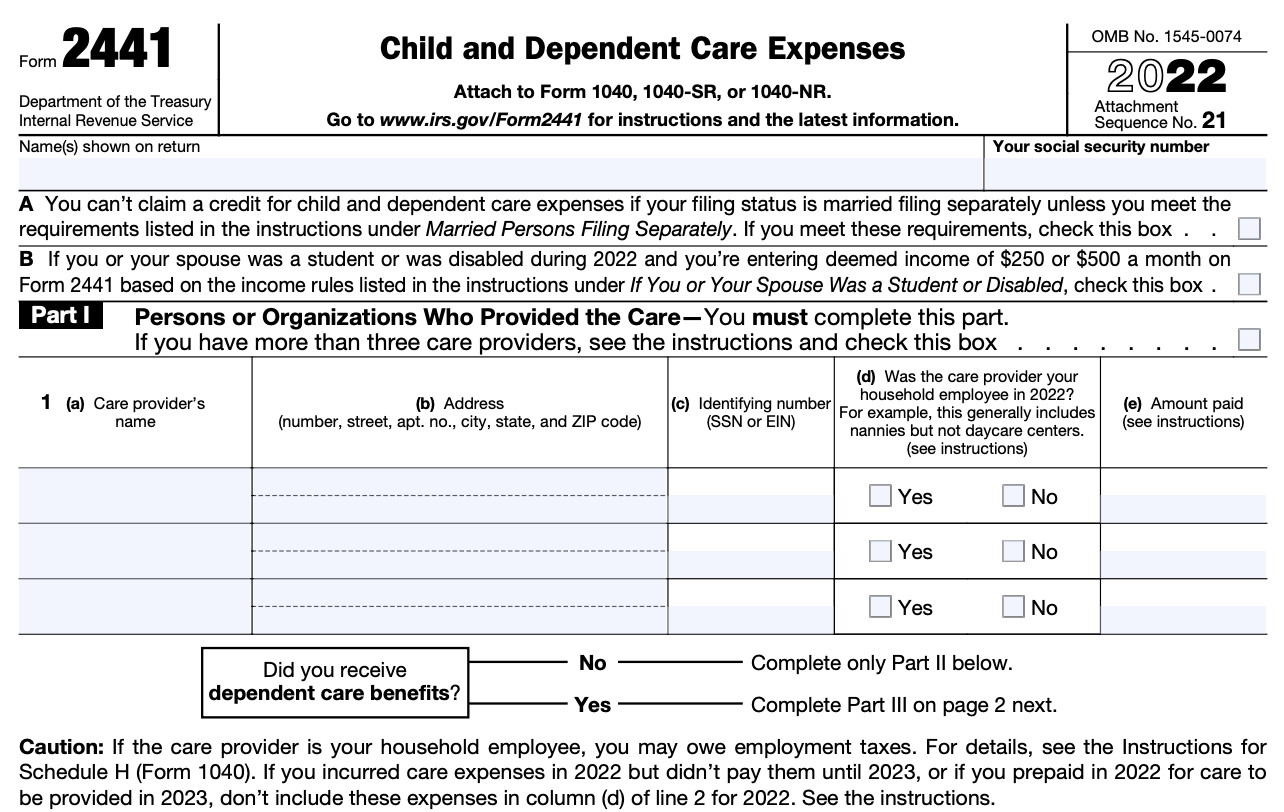 Tax Form 2441: Child and Dependent Care Expenses