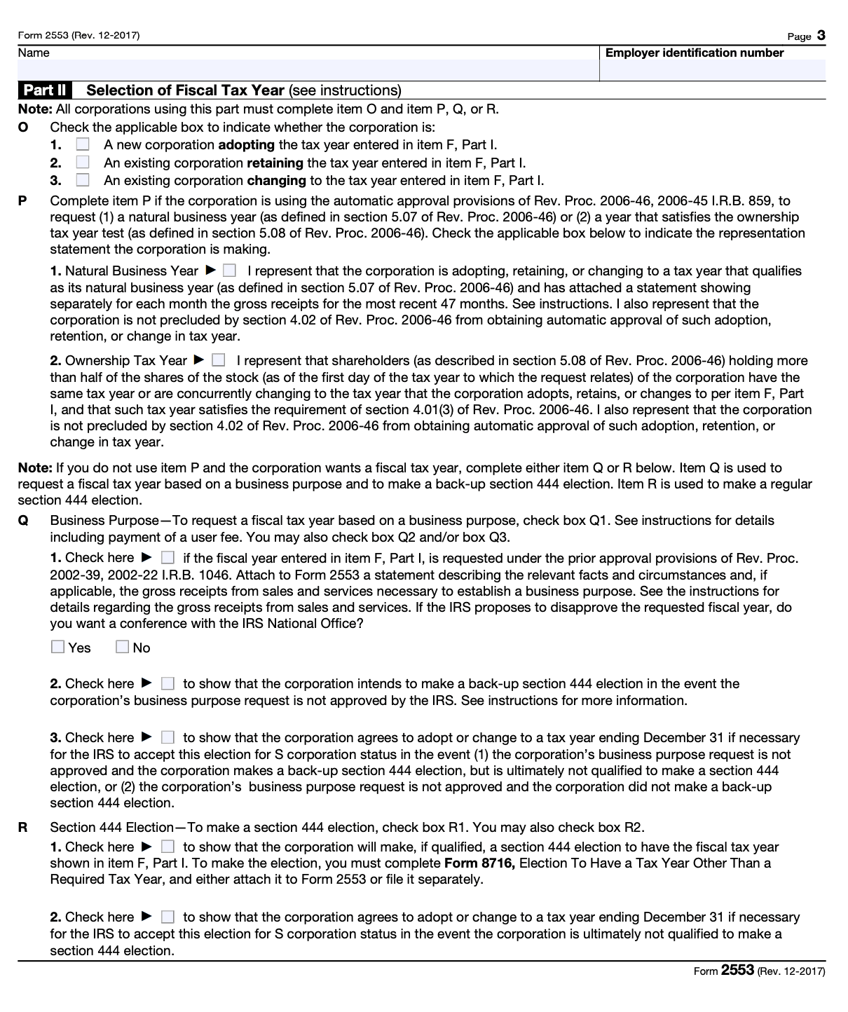 You can also request a fiscal tax year without completing item P if it is for a specific business purpose, along with a backup Section 444 election vide Item R. The business can opt for a regular Section 444 election by completing Item Q.