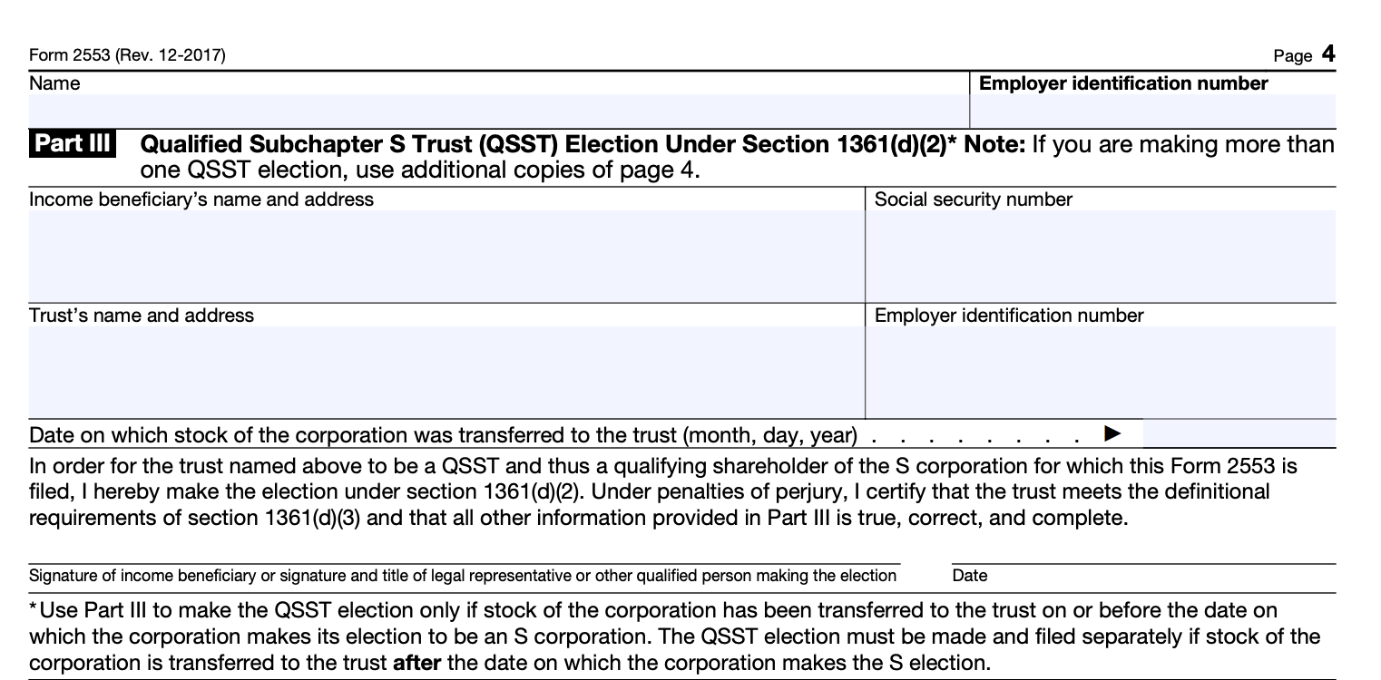 Step 3: Complete Part III, Qualified Subchapter S Trust (QSST) Election Under Section 1361(d)(2)