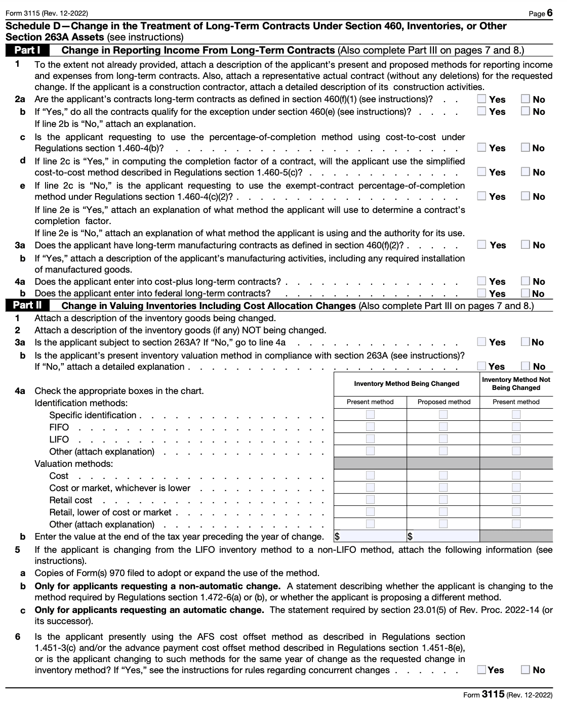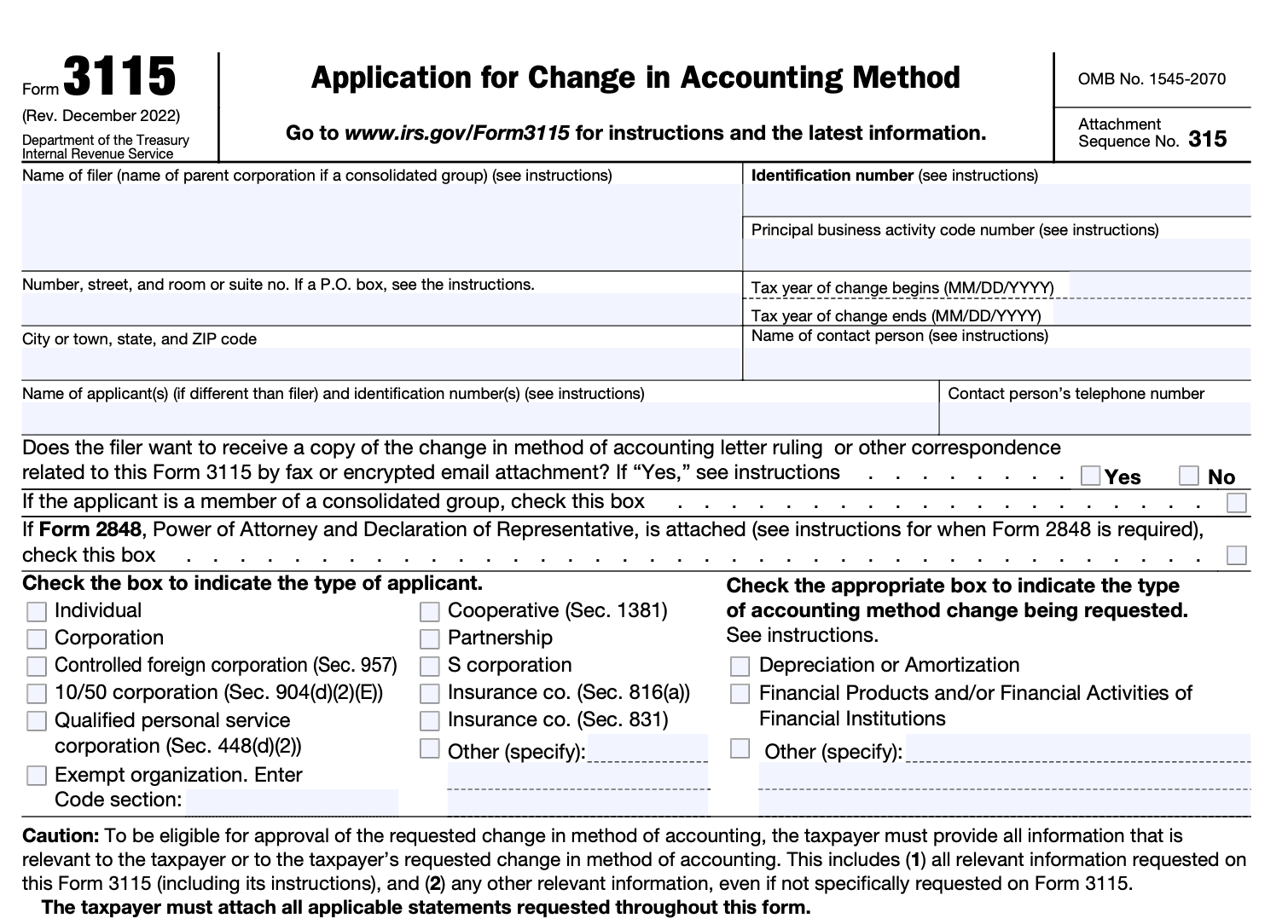 IRS Tax Form 3115: Application for Change in Accounting Method