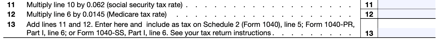 In Part III, you will need to complete the computation of the social security and Medicare tax. This involves entering the calculated tax from Part II, multiplying it by the appropriate tax rate, and making any adjustments if necessary.