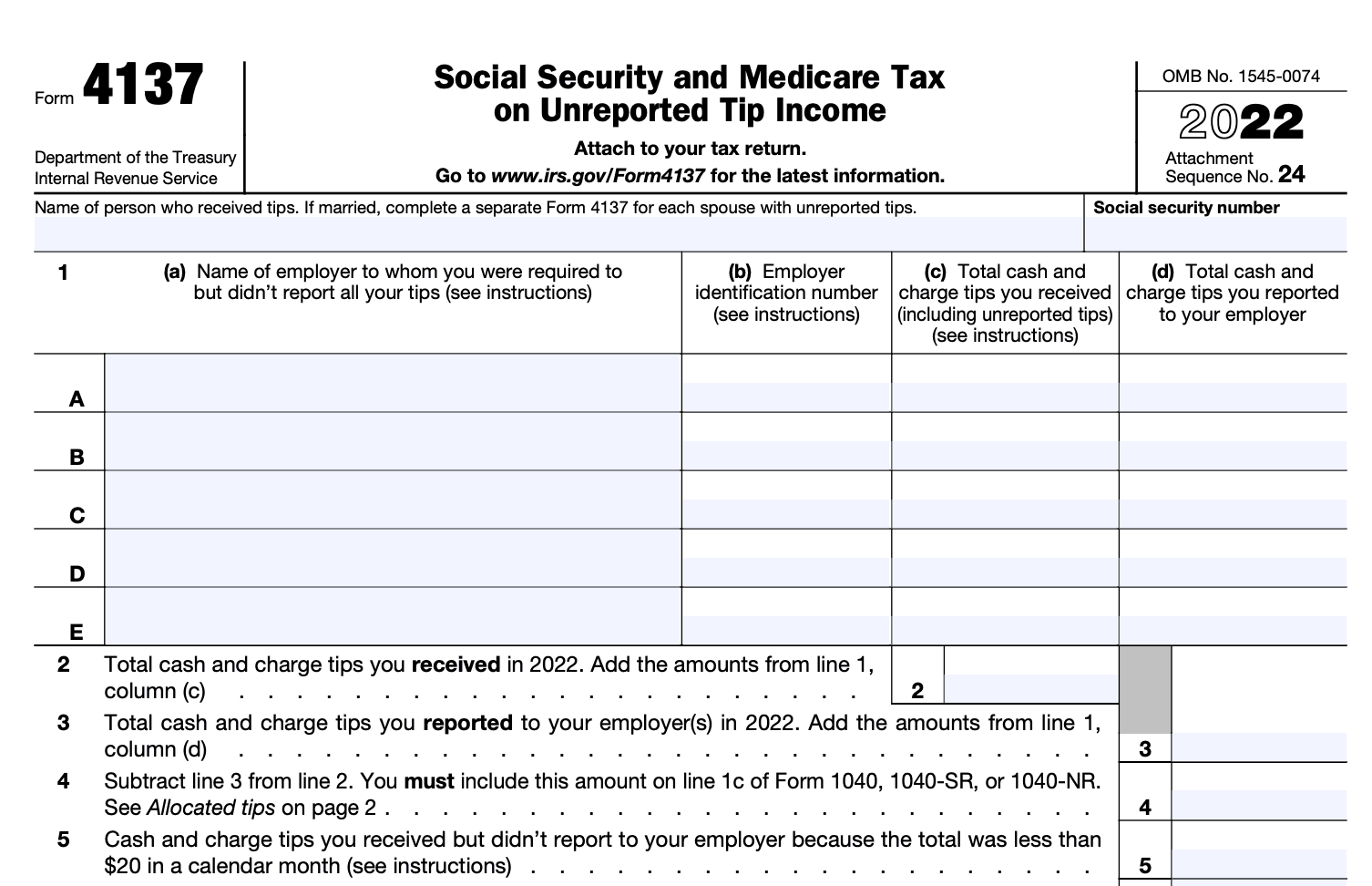 Form 4137: Social Security and Medicare Tax on Unreported Tip Income