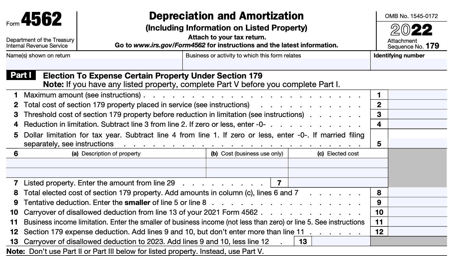 Section 179 of the IRC allows you to take an immediate deduction for business expenses related to depreciable assets, including equipment, vehicles, and software. Suppose you have qualified property eligible for deduction under Section 179. In that case, you need to make an election for the same in Part I Form 4562. Here's the information you need to fill up in this part.
