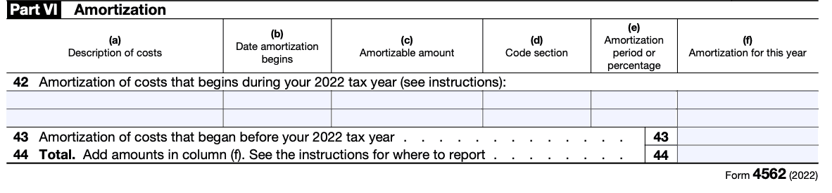However, filling up Part VI is often tricky because it is hard to ascertain the value of intangible goods. For example, how do you put a price on your goodwill, and how do you justify it? It's best to consult a CPA or a tax advisor if you're going to amortize assets than simply guess the worth of your intangible assets.