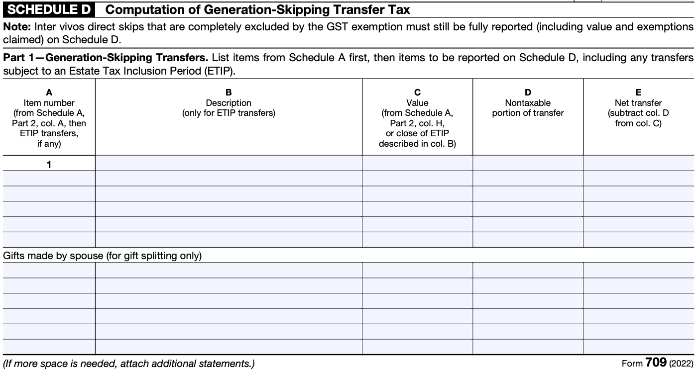 It's important to note that if you need additional time to file Form 709, you can request an extension. However, an extension only grants you more time to file the form, not to pay any gift tax owed