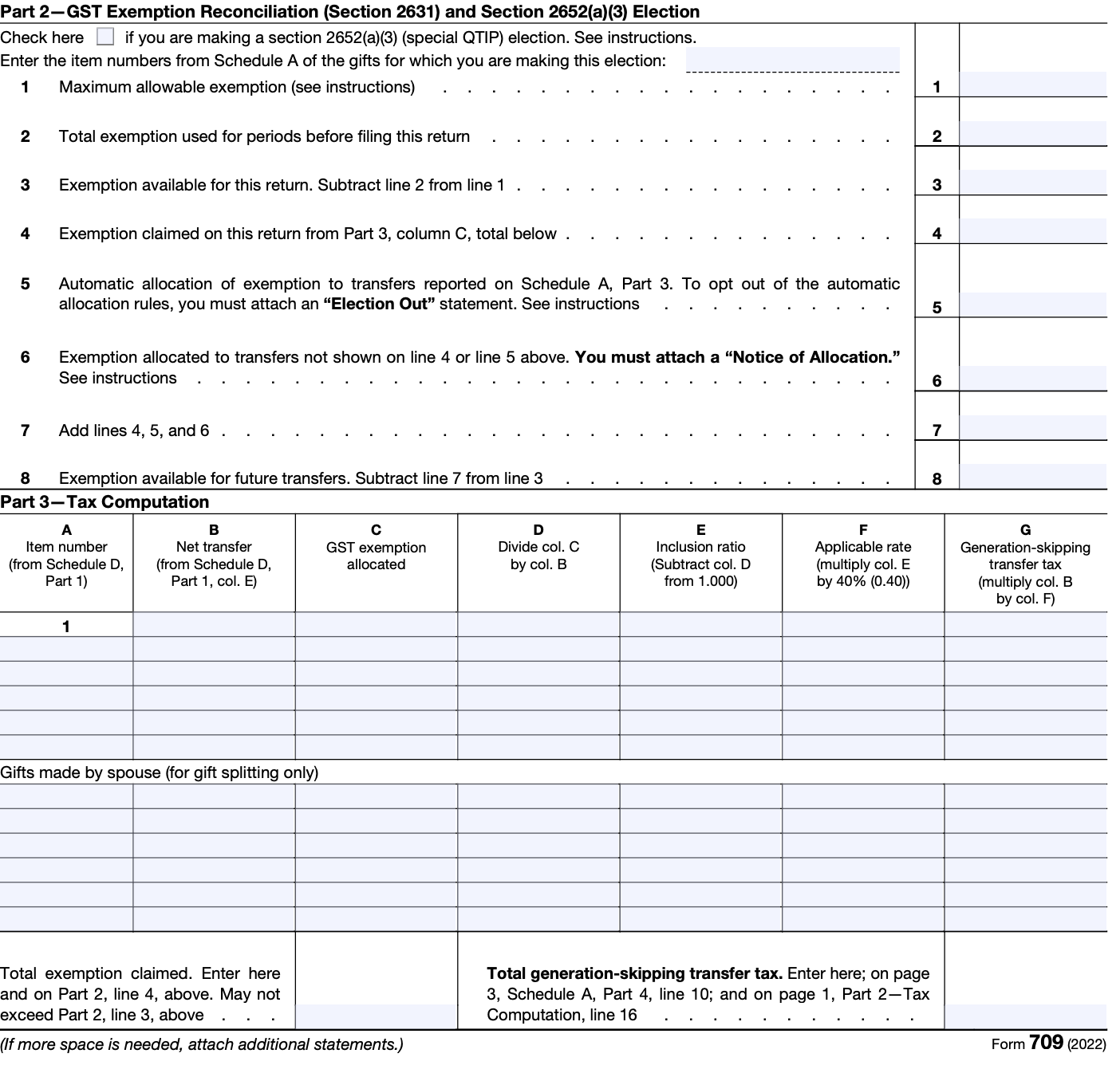 Step 6: Complete Part 2 - Calculation of taxable gifts