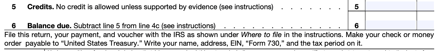 Timely payment: The tax liability reported on Form 730 should be paid in full by the due date. Include the payment along with the form when submitting it to the IRS.