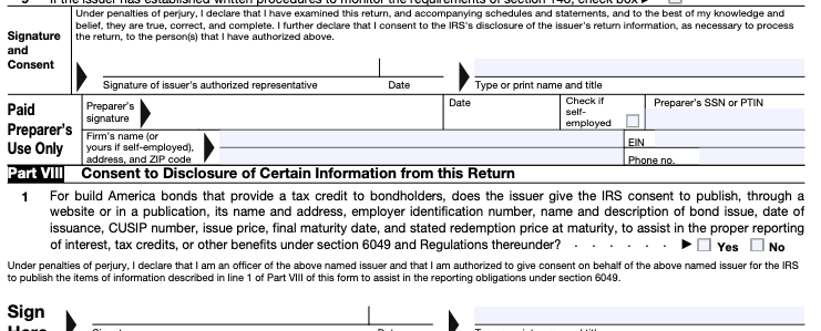 Part III deals with the use and certification of the issue. It requires information about the facilities or projects financed by the bond proceeds.