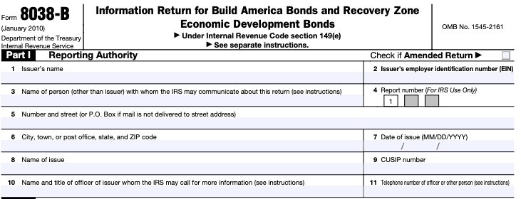Form 8038-B: Information Return for Build America Bonds and Recovery Zone Economic Development Bonds