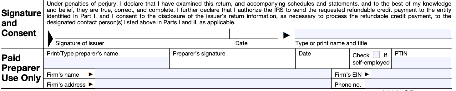 Part III is used to provide information about the claimant who will receive the credit payment. This could be the issuer or another person authorized to receive the payment on behalf of the issuer.
