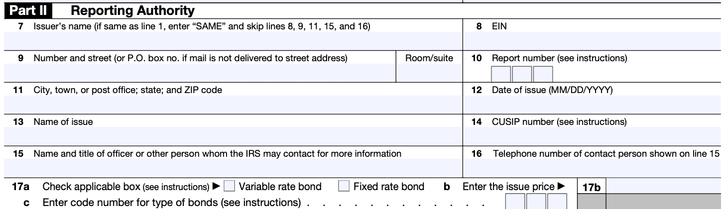 Accurate record-keeping: The form requires detailed information about the bonds, such as the issue date, maturity date, and use of proceeds. Completing this form facilitates accurate record-keeping for both the issuer and the IRS.