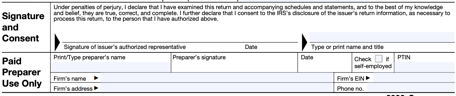 Late filing penalties: If the form is not filed by the original or extended due date, the issuer may be subject to penalties based on the number of days the filing is late.