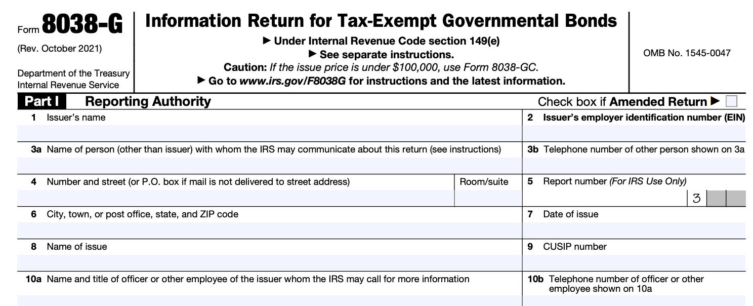 Form 8038-G: Information Return for Government Purpose Tax-Exempt Bond Issues