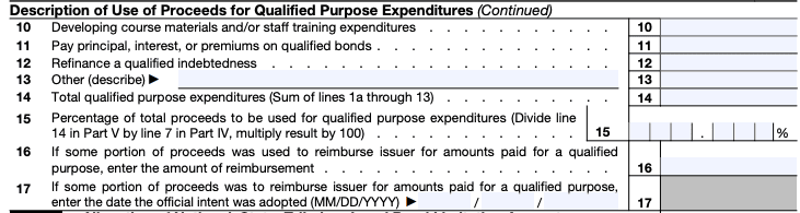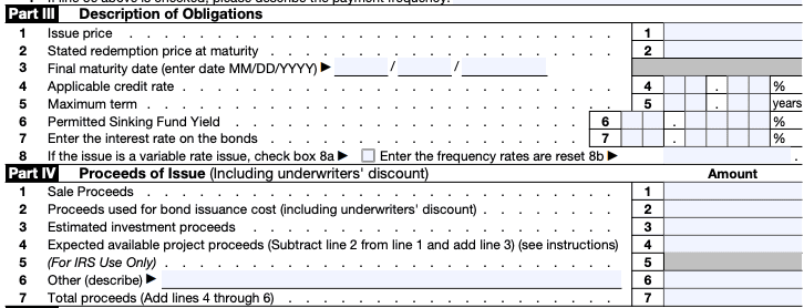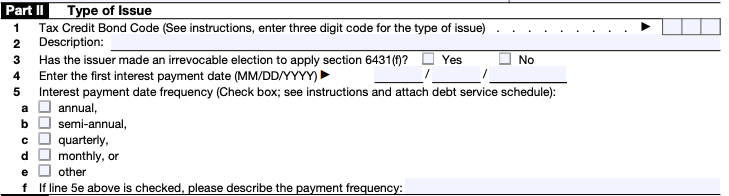 Part II is used to report information about the tax credit(s) associated with the bond issue. You will need to indicate the type of tax credit, the credit amount, and any carryforward amounts from previous years.