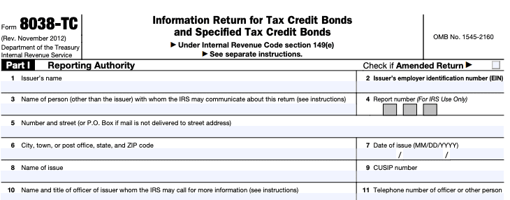 Form 8038-TC: Information Return for Tax Credit Bonds and Specified Tax Credit Bonds