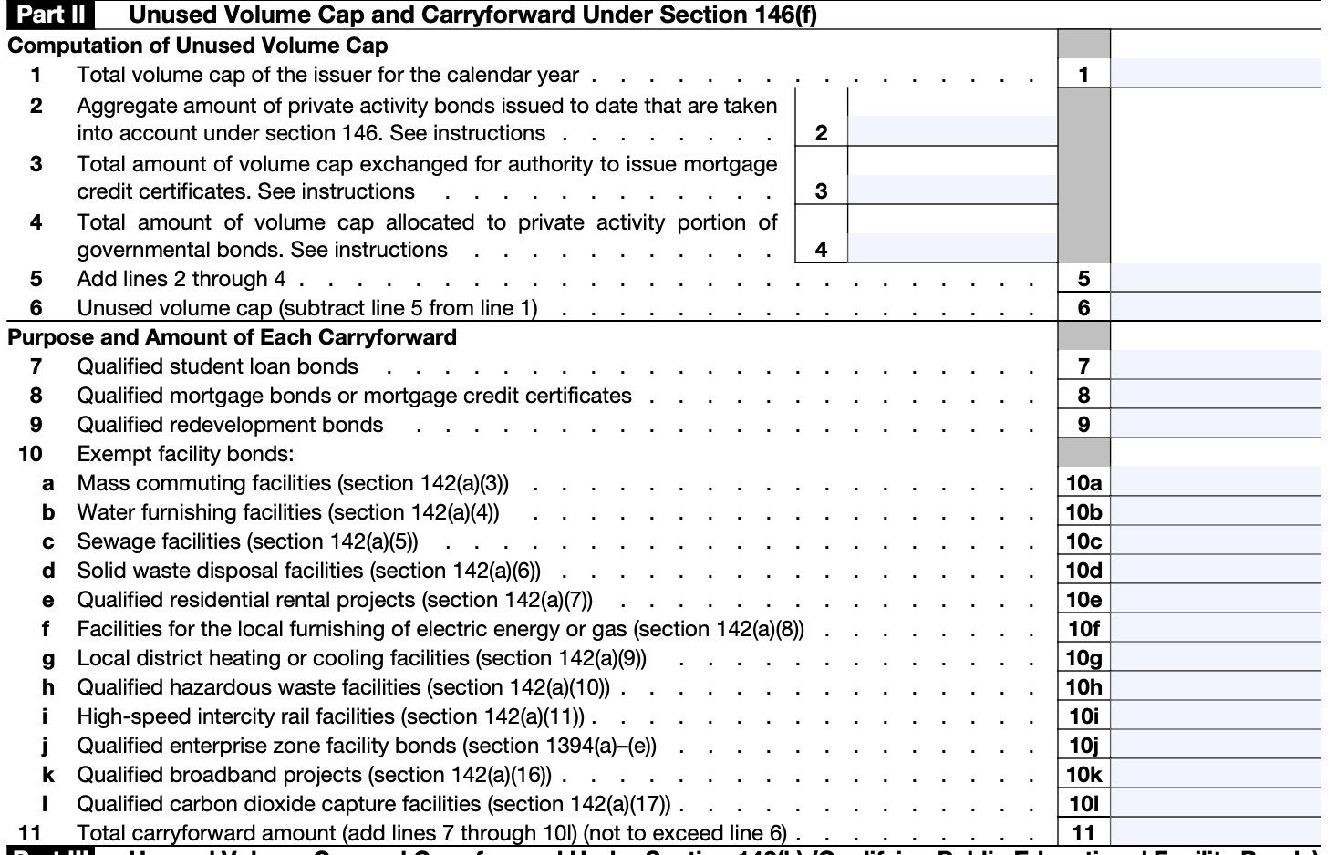 This section is likely to require details about the private activity bonds issued in the current year and the amount of volume cap used. Fill in the appropriate boxes accurately.