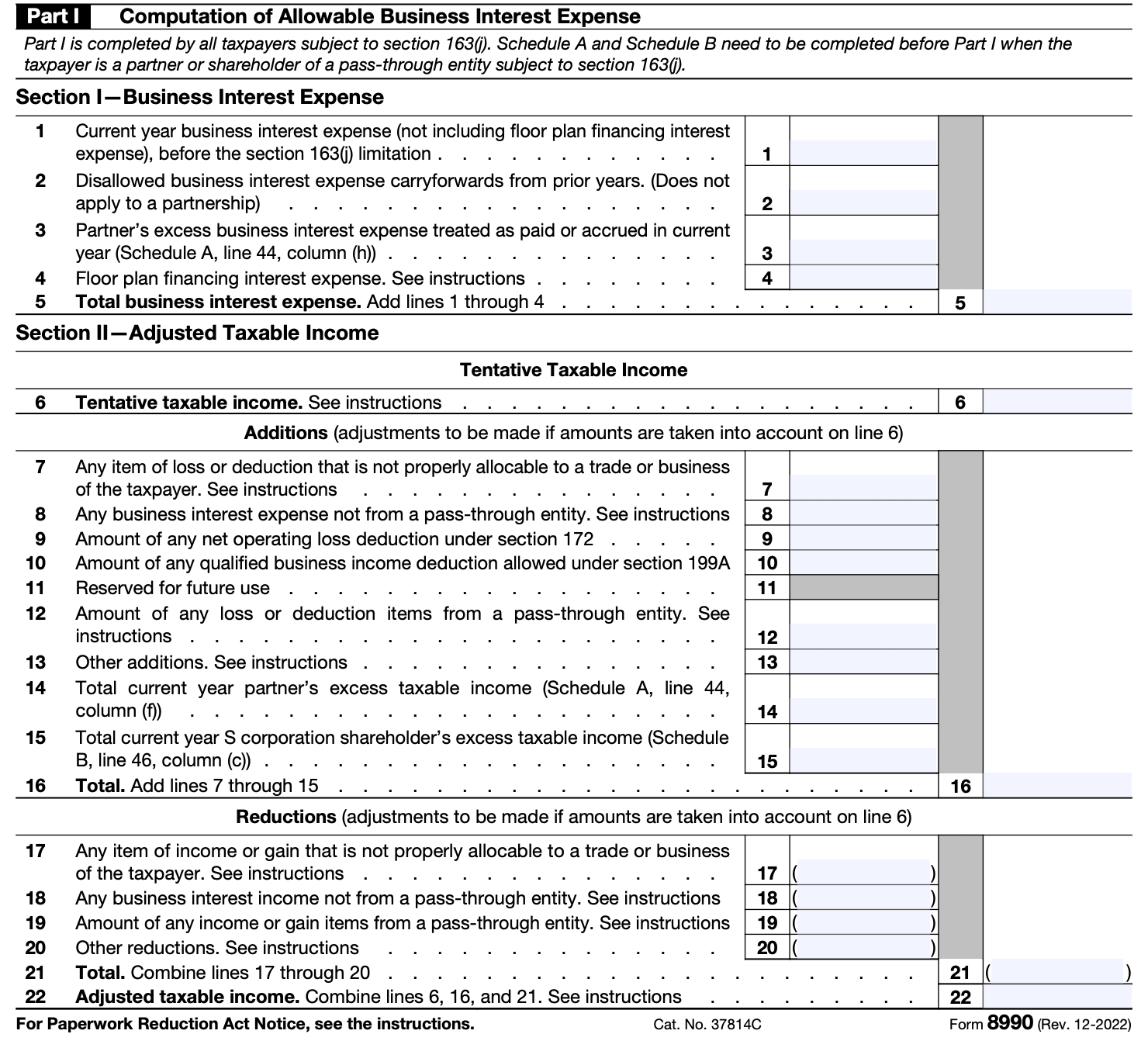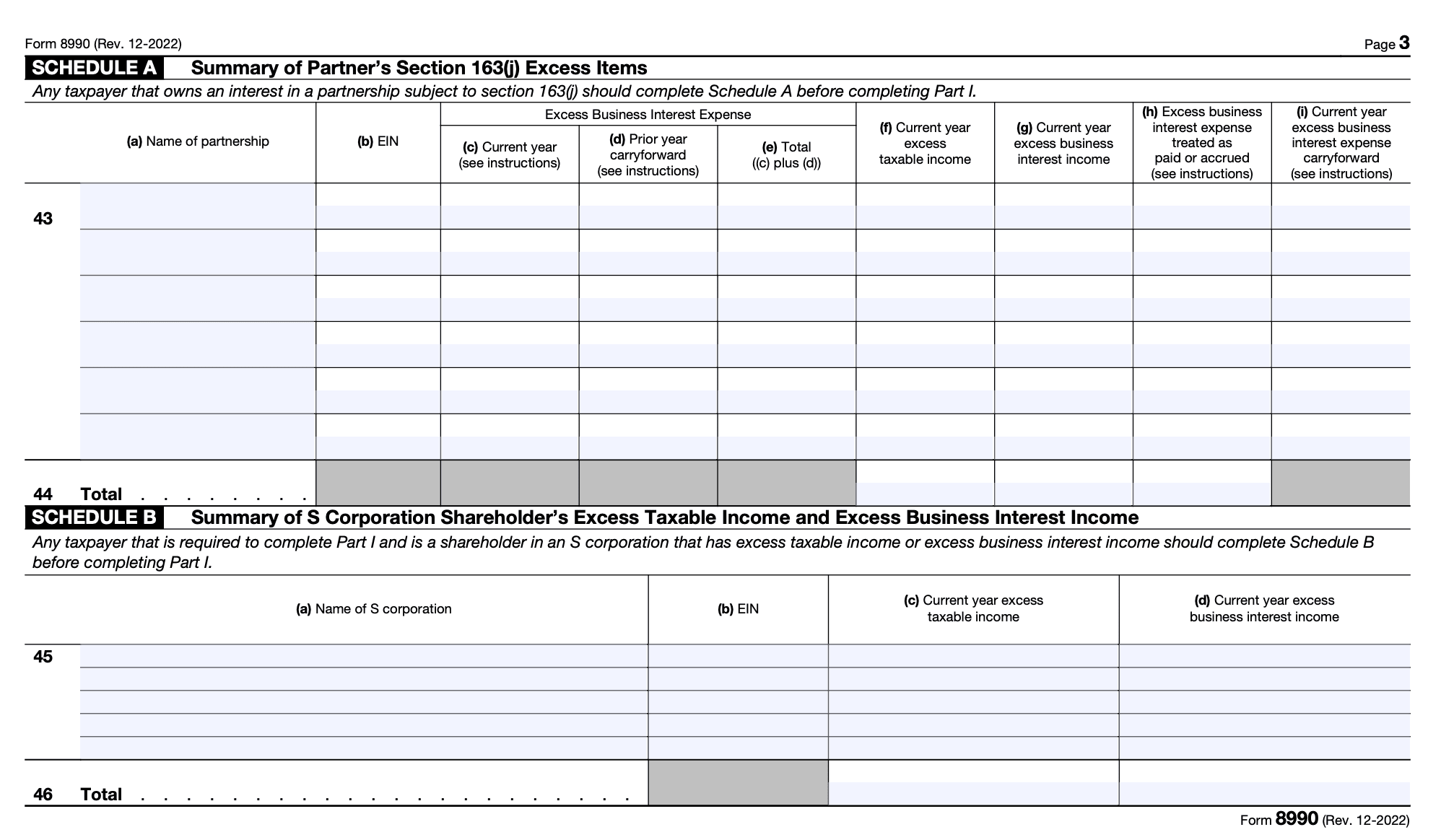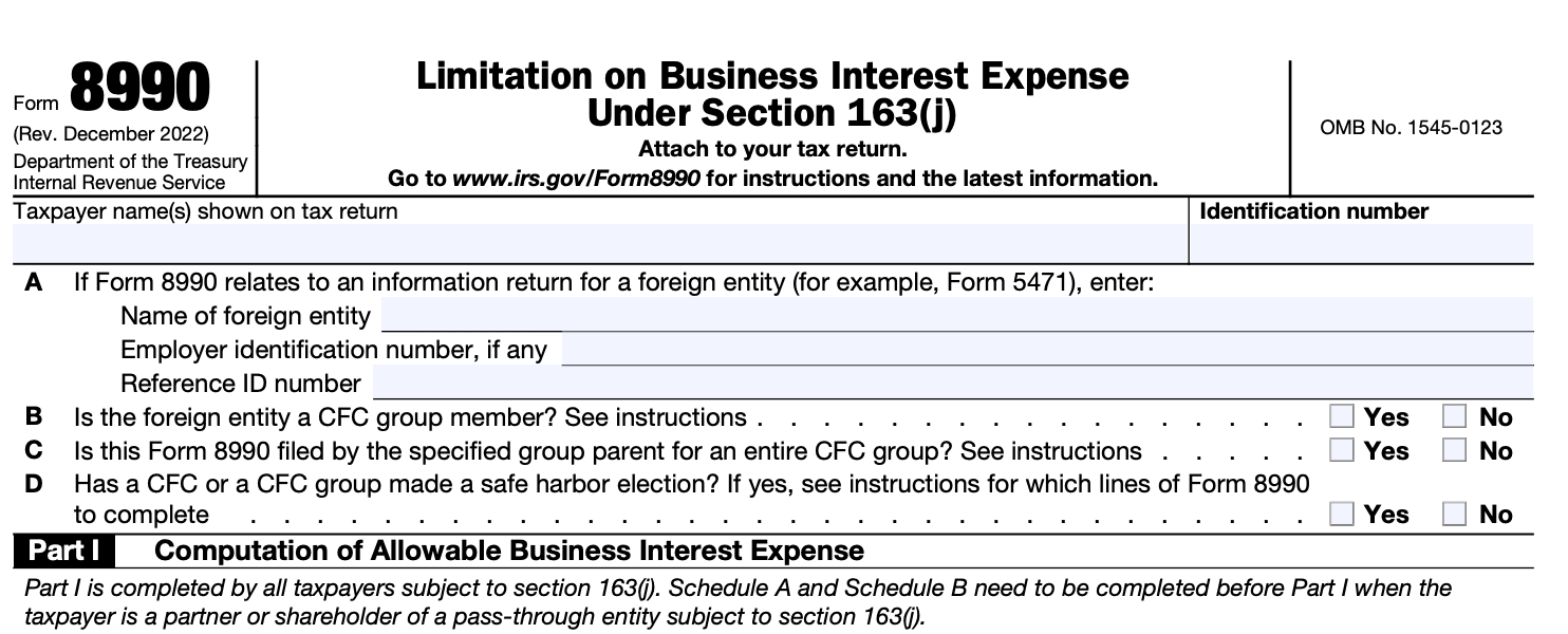 IRS Tax Form 8990: Limitation on Business Interest Expense Under Section 163(j)