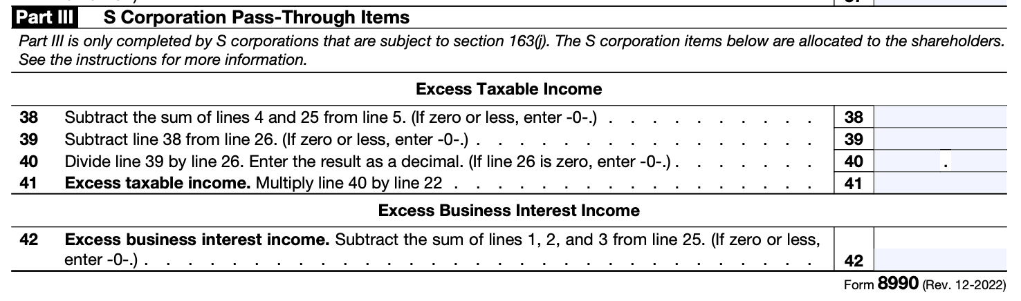 Form 8990 helps businesses calculate their adjusted taxable income, which is an important factor in determining the allowable deduction for business interest expenses. If a corporation's business interest expense exceeds the allowable deduction, the excess amount can be carried forward to future tax years, subject to certain rules.