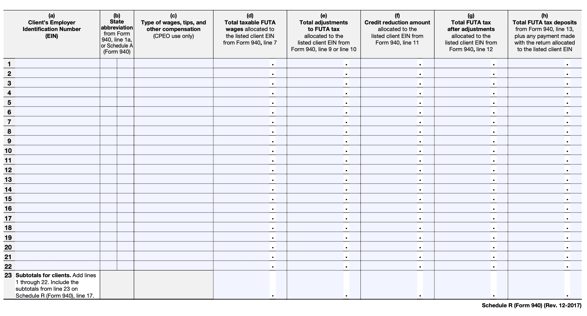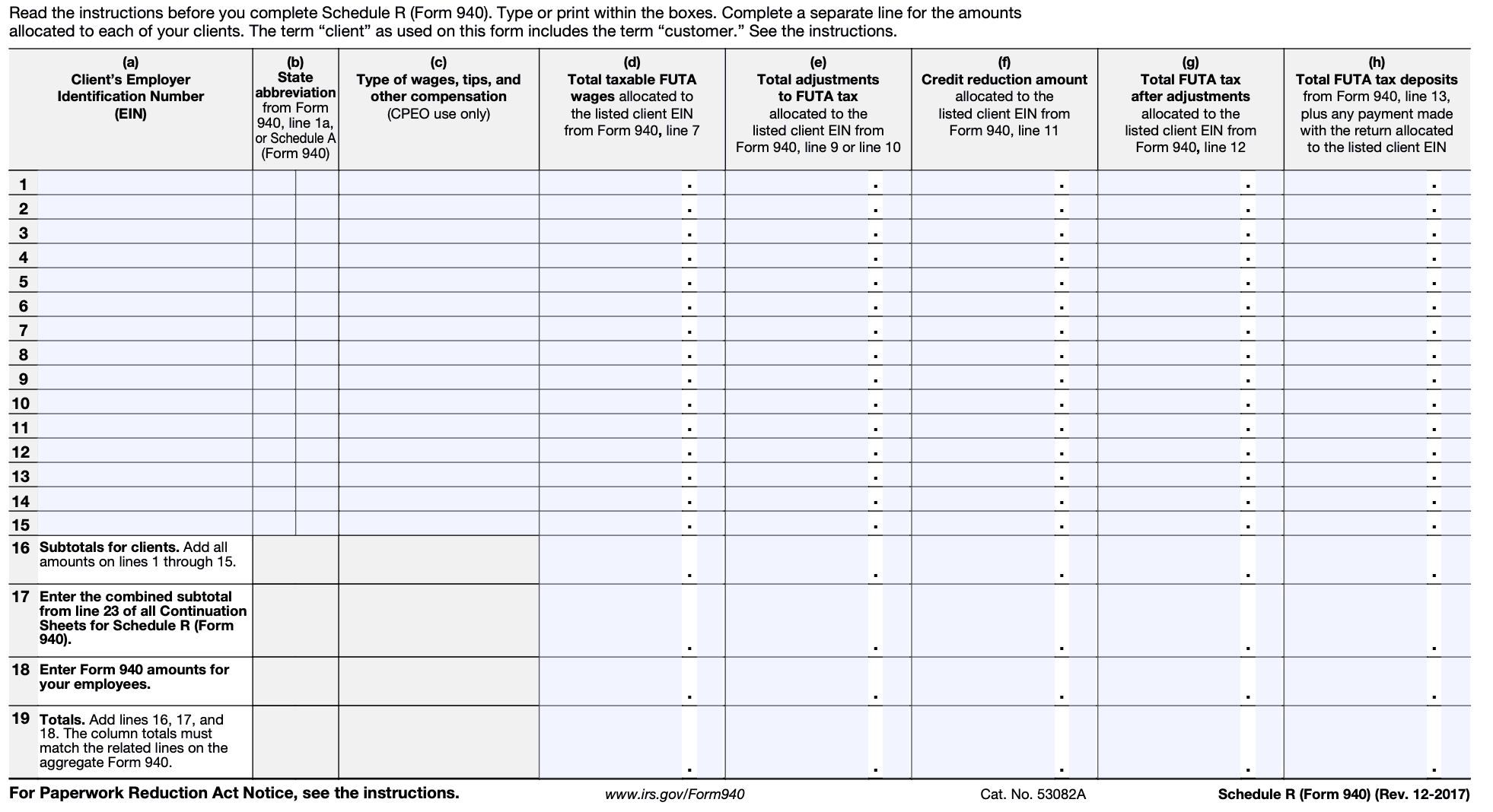 It's worth noting that tax forms and instructions may change over time. Therefore, it's important to refer to the most recent version of Form 940-Schedule R and the corresponding IRS instructions when completing the form.