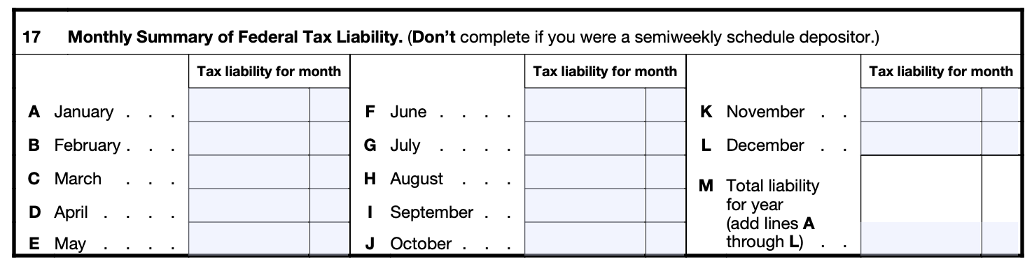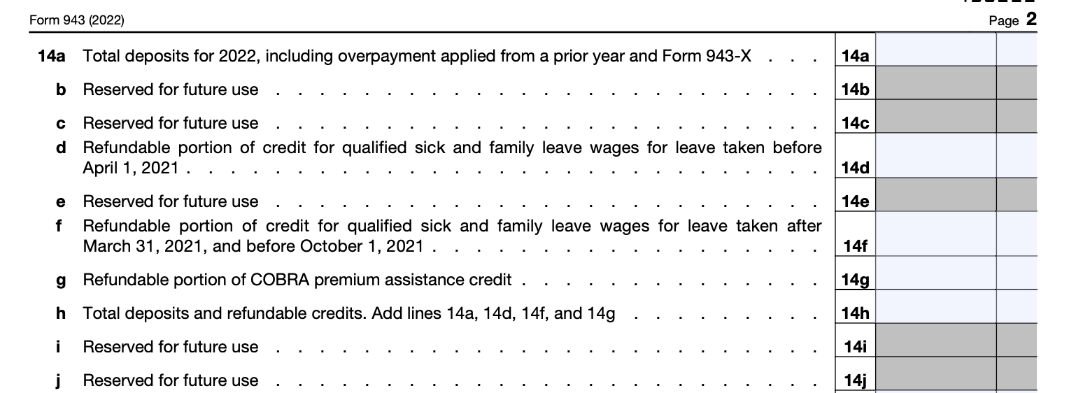 Line 14: Enter any deposits made during the calendar year, including any overpayments made.