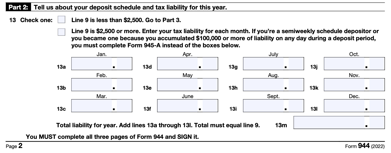 - Failure to file Form 944 or filing it late can result in penalties and interest.