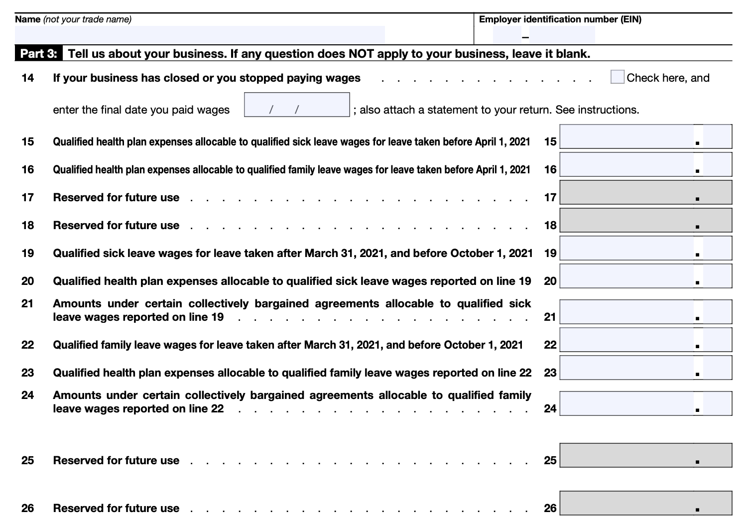 In this part, you will need to enter your business name, address, and Employer Identification Number (EIN). You will also need to indicate the type of business entity you have (such as a sole proprietorship or corporation) and provide contact information for the person responsible for the payroll taxes.