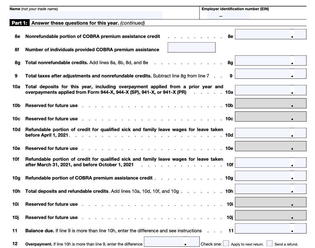 If there were any adjustments made to your taxes and deposits during the year, you will need to report them in this part. This could include corrections to previous tax returns or adjustments made by the IRS.