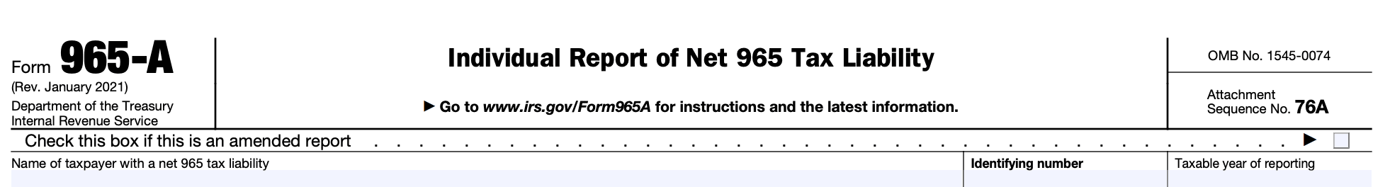 Form 965-A: Individual Report of Net 965 Tax Liability