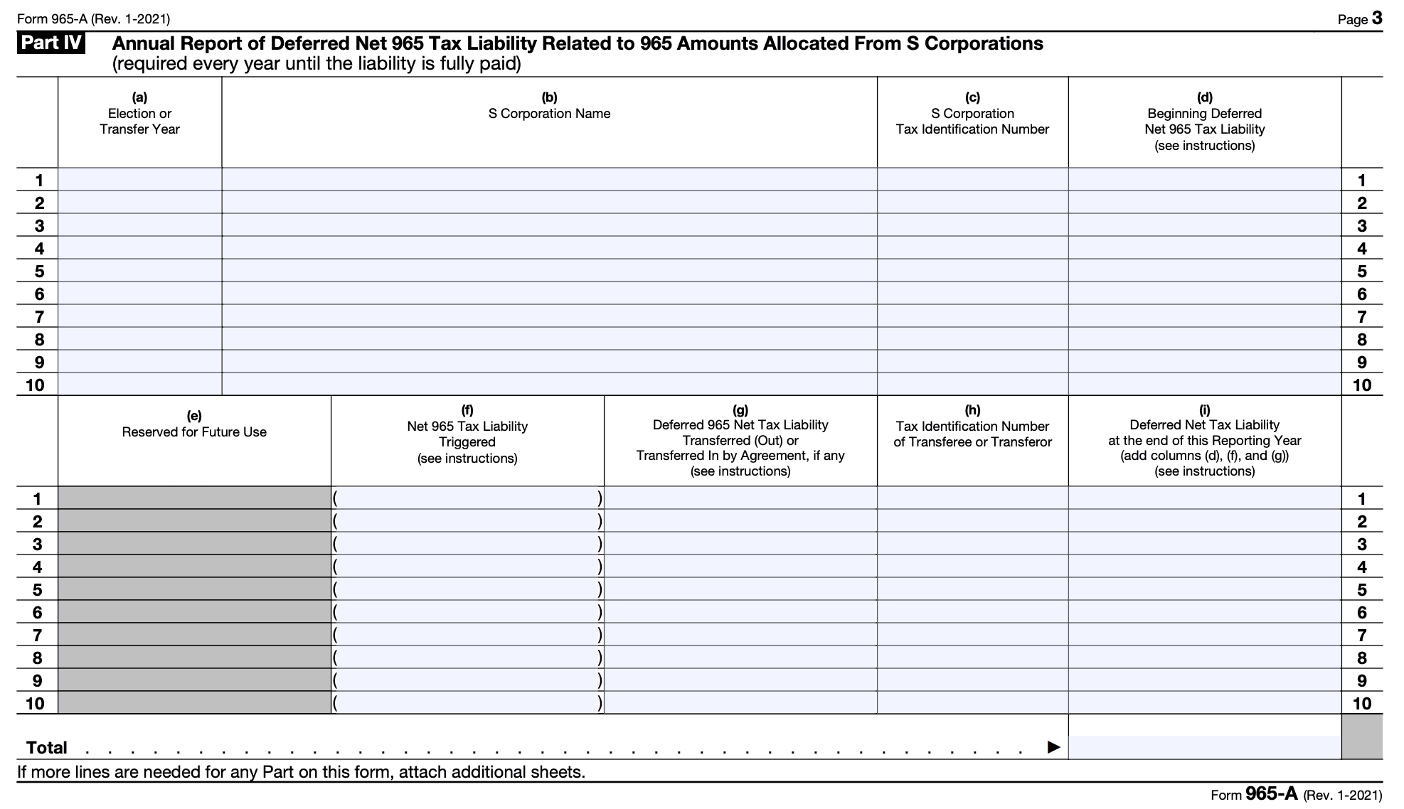Step 7: Complete Part IV - Deferred Net 965 Tax Liability