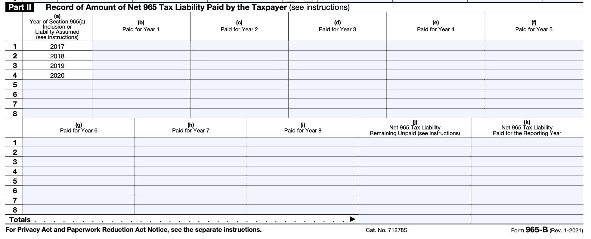 Special Considerations When Filing Form 965-B