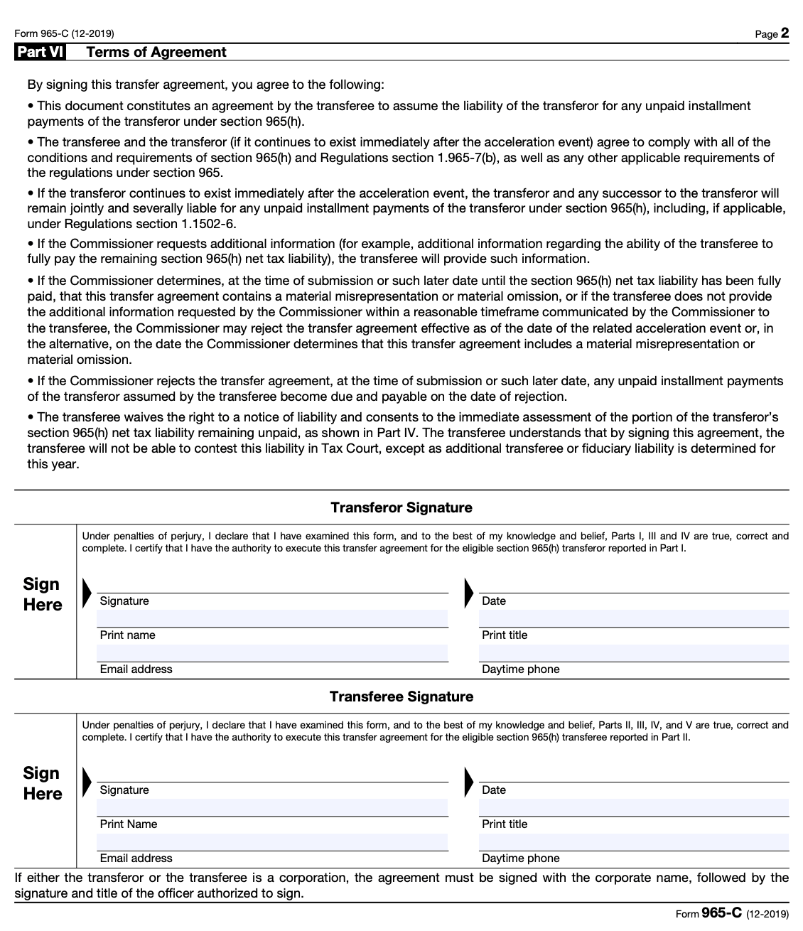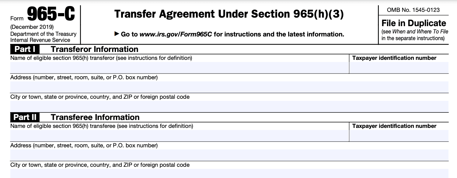 Form 965-C: Transfer Agreement Under Section 965(h)(3)