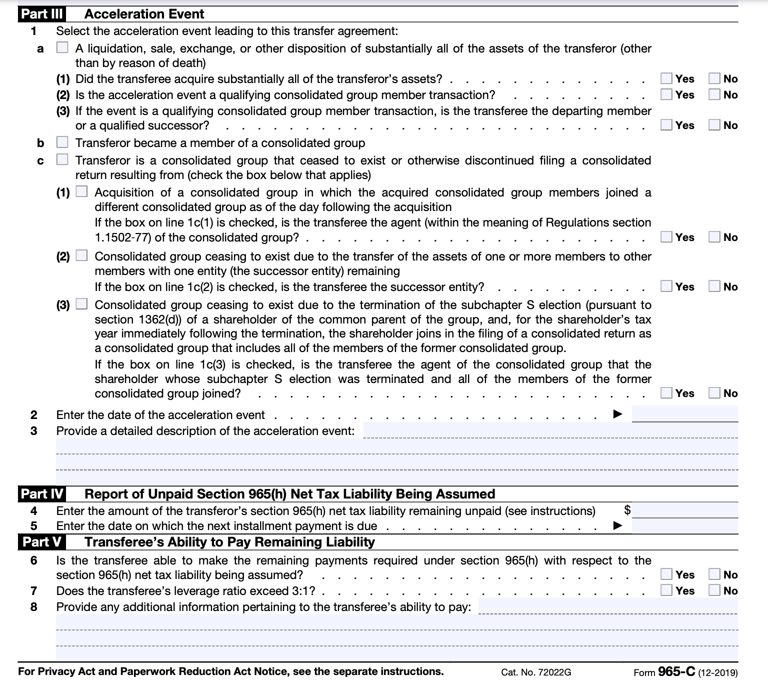 Components of Form 965-C