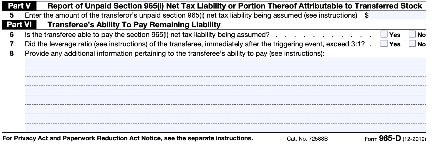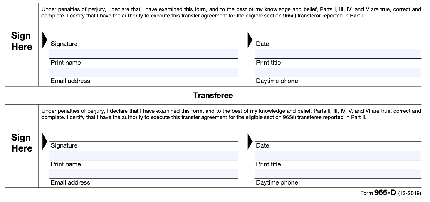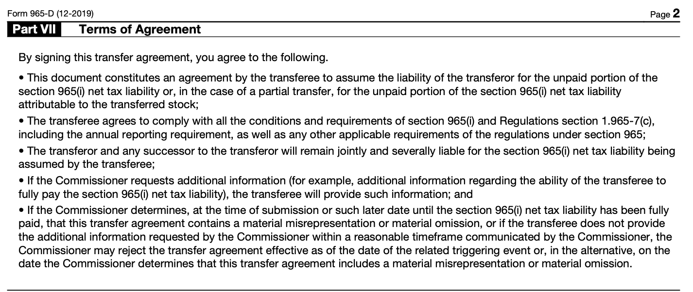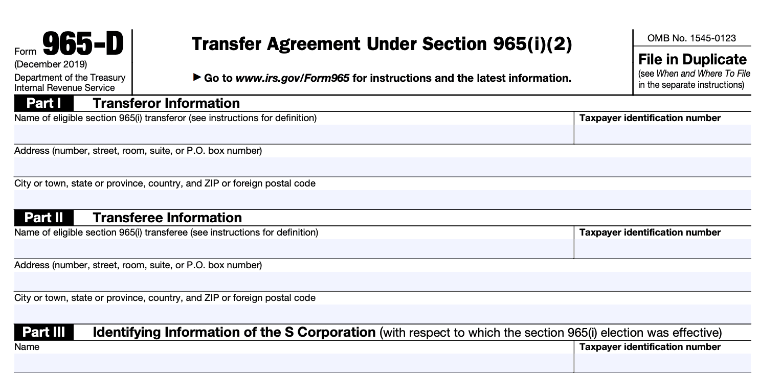 Form 965-D: Transfer Agreement Under Section 965(i)(2)