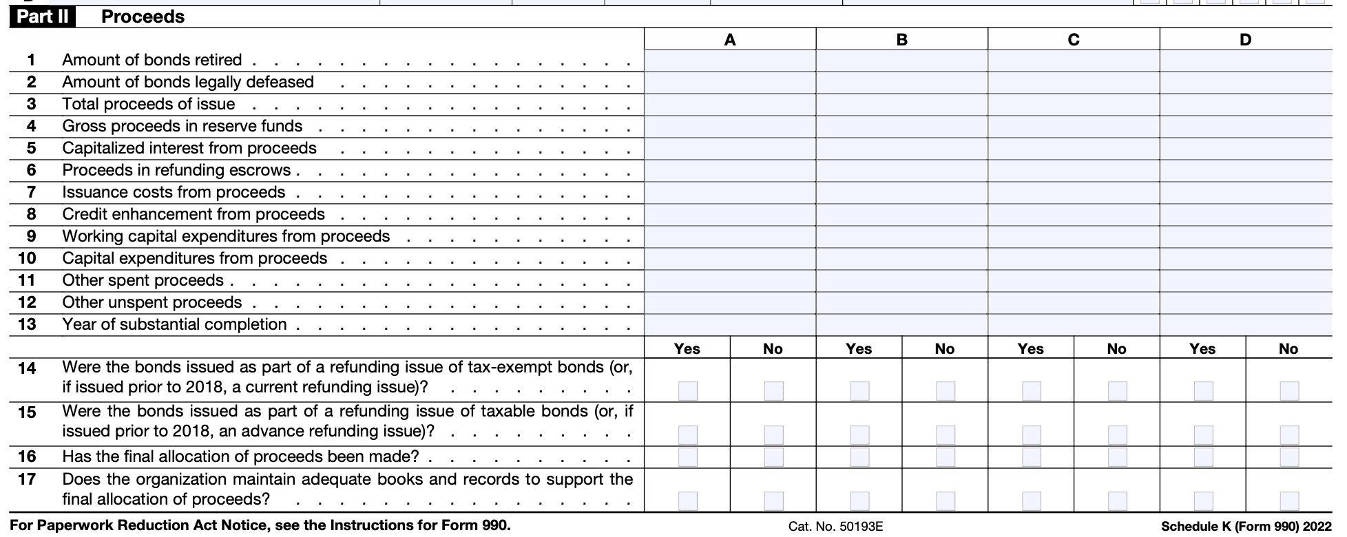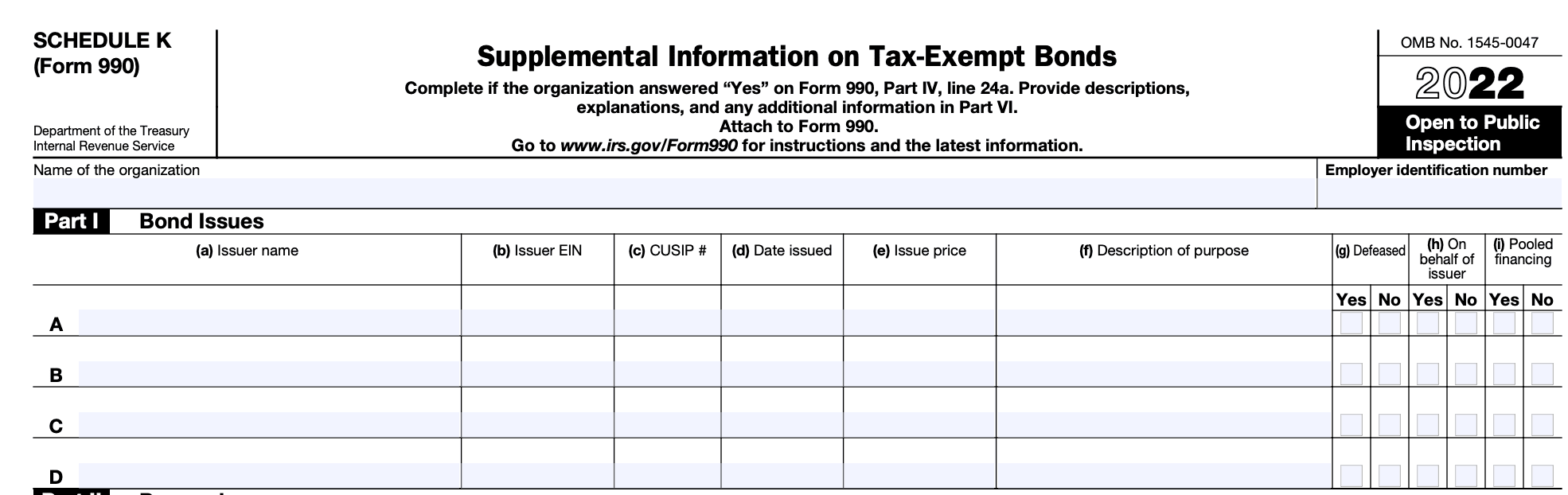 Form 990: Schedule K, Supplemental Information on Tax-Exempt Bonds