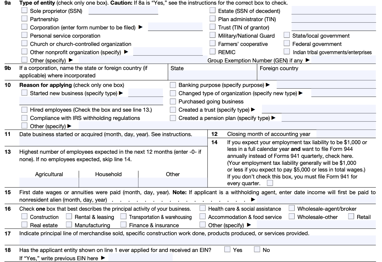 Here are some instances when you may need an EIN, along with the corresponding instructions for each line on Form SS-4: