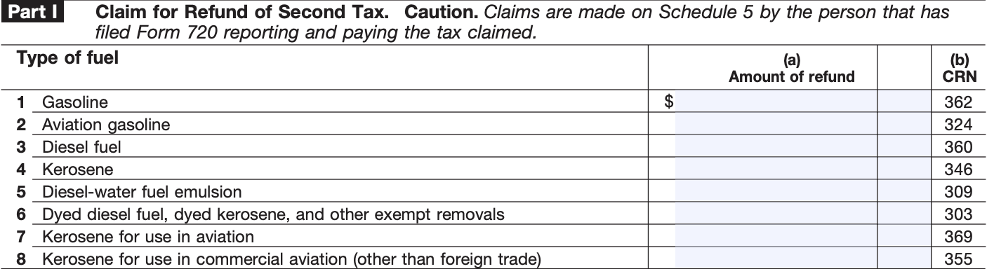 It's important to note that specific rules and requirements apply to Section 4081(e) claims, and not all fuel uses or activities may qualify. It's recommended to consult the official IRS guidelines, instructions for Schedule 5 (Form 8849), and if needed, seek professional tax advice to ensure compliance and maximize eligible refunds or credits.