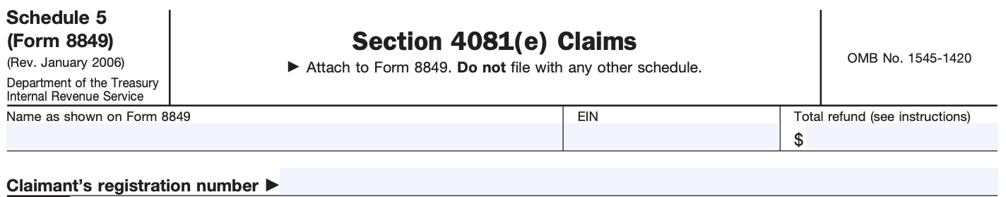 Schedule 5 (Form 8849): Section 4081(e) Claim